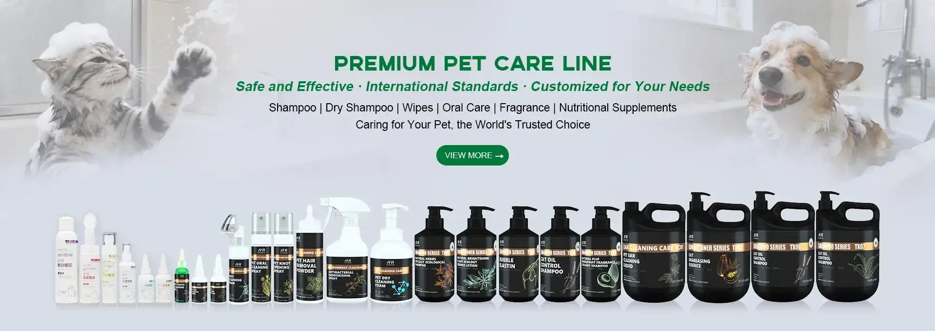 We specialize in pet care products, accessories, and food, with advanced production and strict quality control from raw materials to packaging. Our diverse range includes shampoos, conditioners, shower gels, and more, catering to cats and dogs. Committed to excellence, we deliver reliable, high-quality pet solutions tailored to your needs.